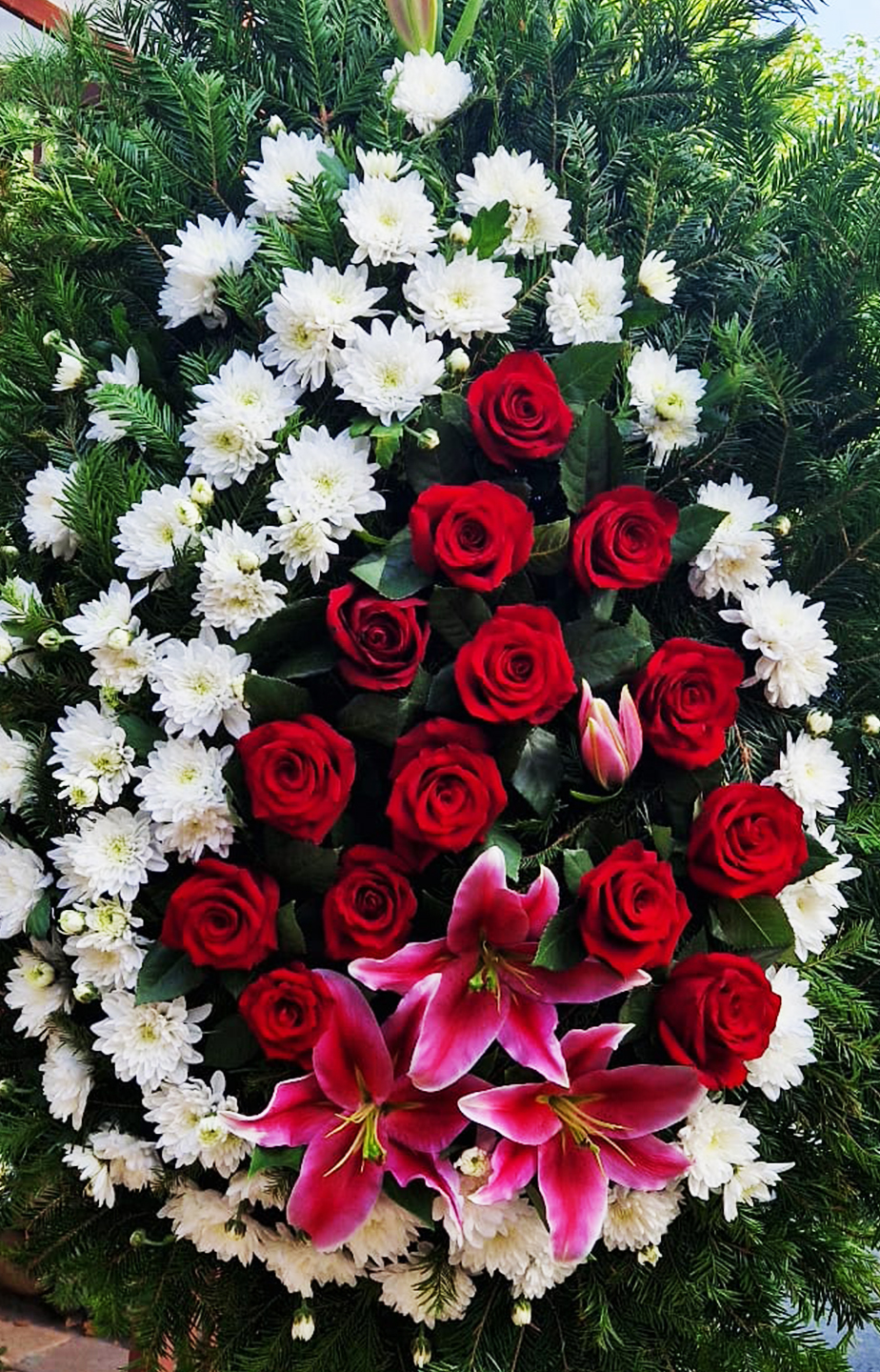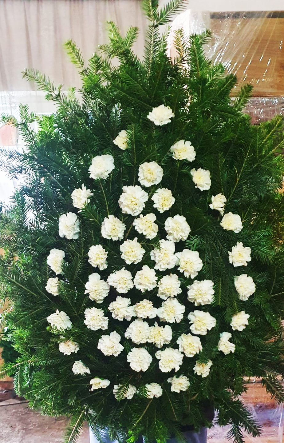Realizăm la cerere coroane și jerbe din flori naturale proaspete, precum:
